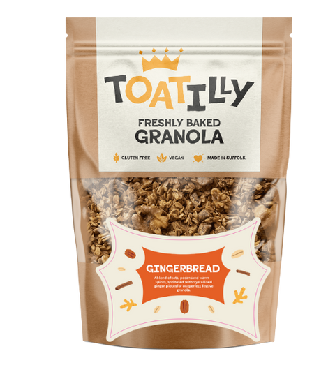 Spoons up and into our seasonal Gingerbread Granola. A warmly spiced special edition, packed with rich pecans and zingy crystallised ginger pieces. The ultimate cosy crunch for a warming start (or end) to your day.